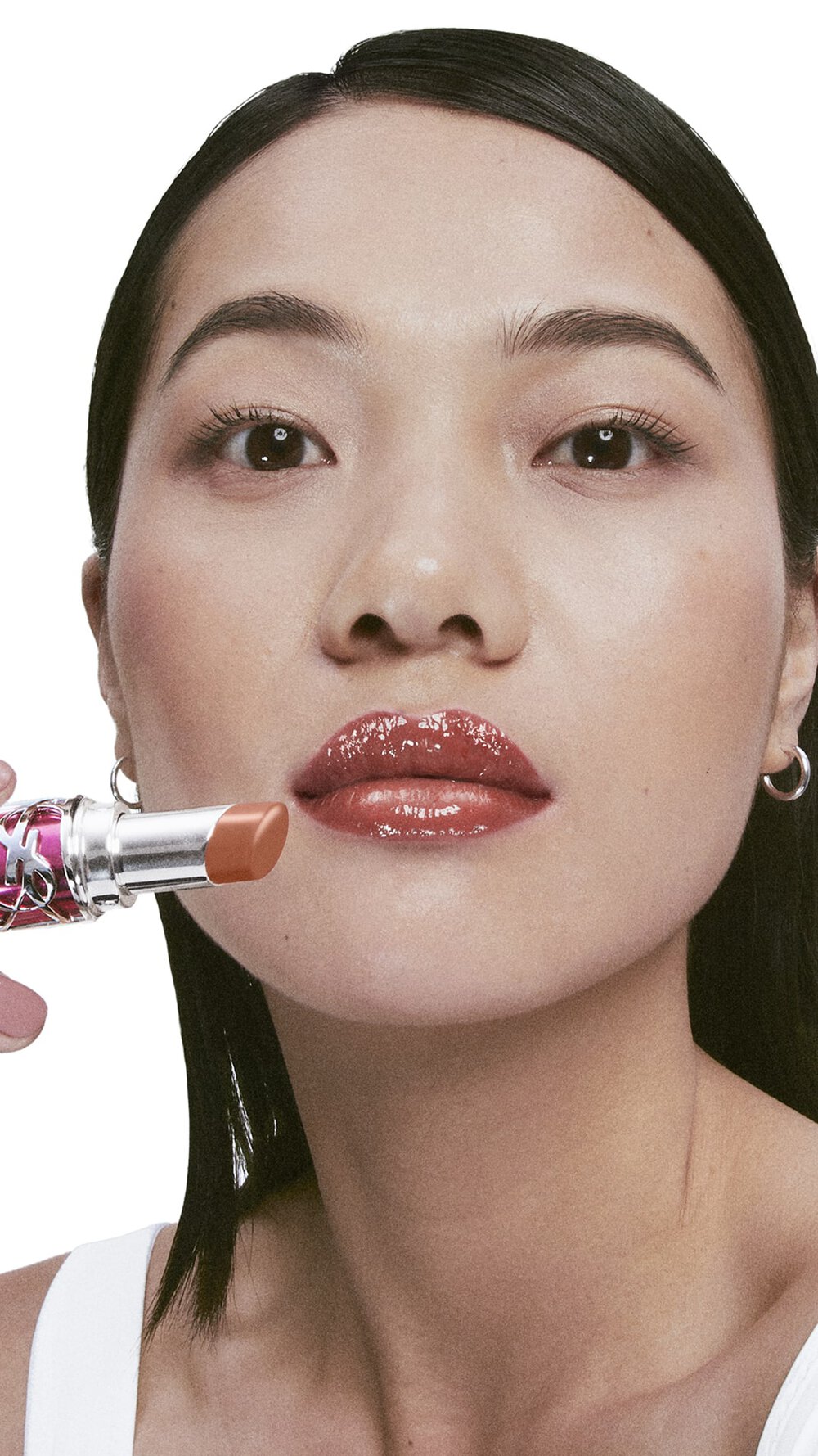 2. SWIVEL UP CANDY GLAZE WITH 6 CLICKS OF TWIST (1MM), Turn the bottom of lipstick part by 6 clicks for 1 application.